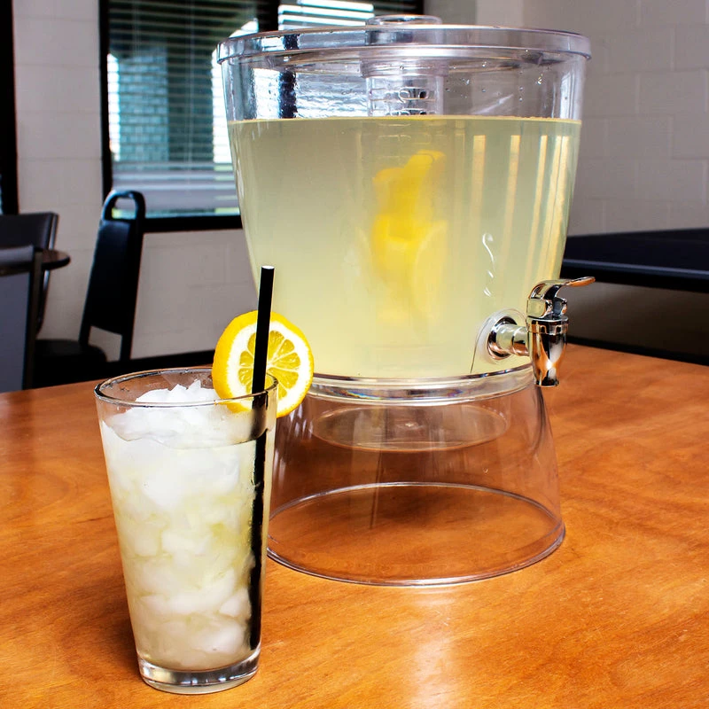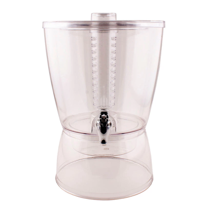 This compact and lightweight beverage dispenser is perfect for serving a variety of cold drinks. This dispenser is ideal for colorful cocktails or drinks with beautiful garnishes. It is durable and easy to clean. This cocktail dispenser can be used for every type of party or event and is suitable for indoor and outdoor use. It is made of clear plastic and has a measurement of 9.5″ x 10.5″ x 13.5″. This product is hand wash recommended.