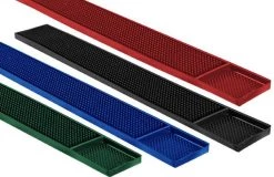 This durable rubber mat is specially designed to keep your bar area and rail protected from spills and excess liquid. With enough room to neatly pour multiple drinks. This Drink Mat comes complete with a textured surface for non-slip traction and featuring your favorite NBA team’s logo on a black background. Easy to clean with a sleek design and affordable rubber mats. Dimensions (Overall): 1.0 inches (H) x 3.25 inches (W) x 24.0 inches (L). Hand Wash Only. Made in the USA