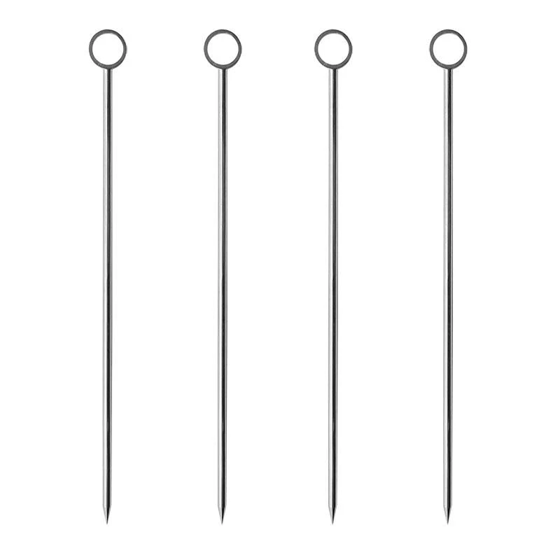 BarConic® reusable stainless steel circle designed cocktail picks. Garnish any type of cocktail with these fun open circle cocktail picks. They are perfect for any event or occasion, show your guests some creative garnished cocktails. They feature a pointed end, great for skewering olives, cherries, appetizers, cheese, and fruit wedges. They measure 4 1/4″ and are a pack of 4.