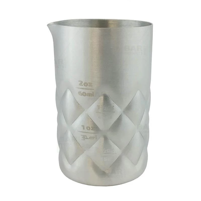 This stainless steel jigger with an embossed diamond pattern is the perfect jigger to add to your bartending ammo. It showcases convenient measurement lines of several different increments while featuring a built in spout to aid in spill proof pouring. The stainless steel design is modern and sleek while the diamond pattern adds a trendy element.