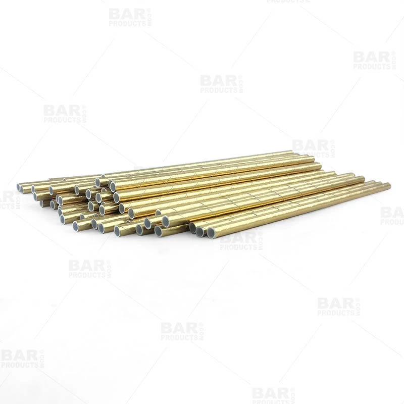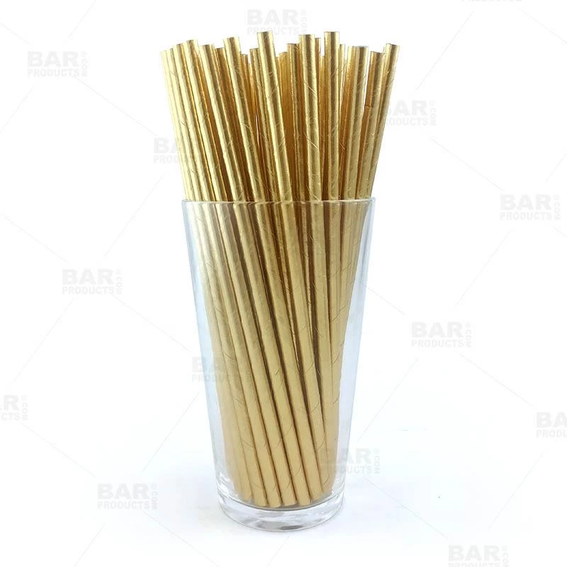 These metallic gold paper straws are a stylish alternative to the everyday classic plastic straws. Paper straws are beginning to take over the beverage industry, as many venues are switching to these biodegradable options and for good reason! These food-safe straws look fantastic accenting any type of cocktail, whether it be on a craft or any other service level. Paper straws are not only good for you, but also for the environment! These straws measure 7.625″ with a 0.25″ diameter. Sold in packs of 100.