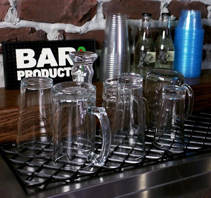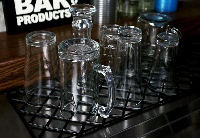 Available in clear or black, these interlocking shelf mats are an economic and ideal way to store you bar glassware. Each section measures 12” x 8” and have interlocking features on both the long and short sides of the mat, allowing you to expand its size in either direction to fit your glassware storage area. They are constructed from a flexible plastic material that will keep the rims of your glassware steady and lifted from surfaces that tend to accumulate bacteria. This sanitary solution is available in packages of 10 or by the case of 150 at desirably low prices.