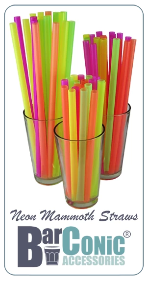 Big, bigger and biggest! We offer these BarConic® MAMMOTH straws in three sizes (8.5″, 10.5″ AND 12″) in a variety of fun assorted neon colors that glow under black lights. Each are 1/2 inch in diameter! Your customers will love these. They come 200 straws to a pack.