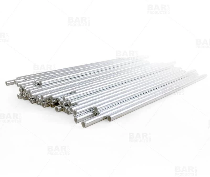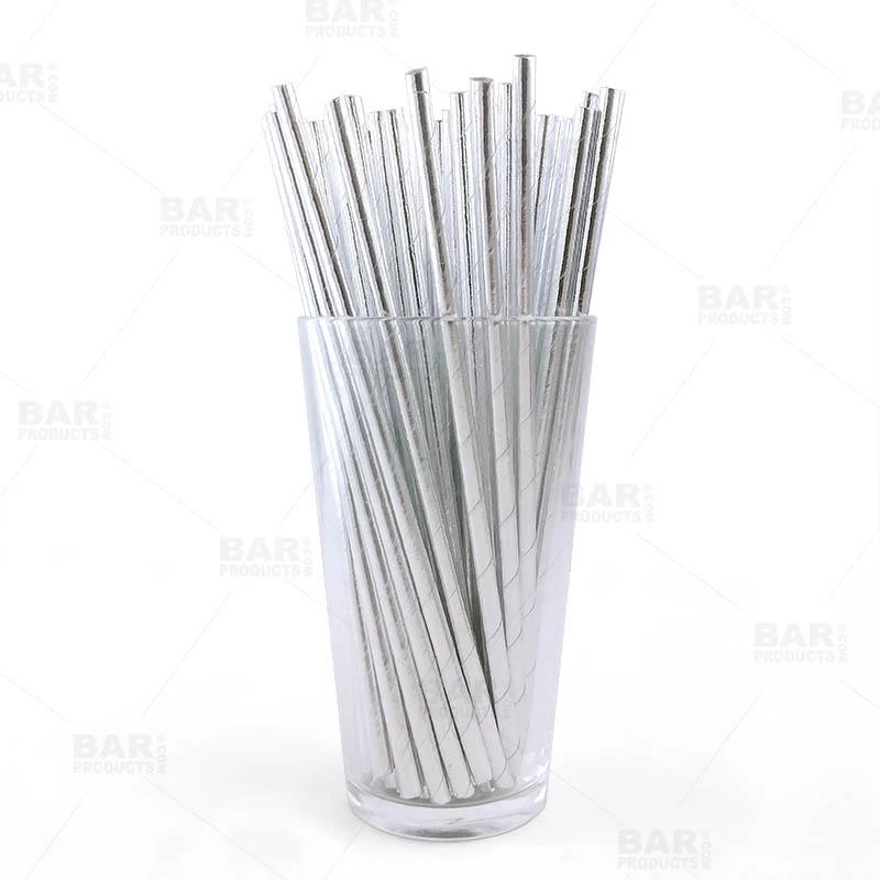 These metallic silver paper straws are a stylish alternative to the everyday classic plastic straws. Paper straws are beginning to take over the beverage industry, as many venues are switching to these biodegradable options and for good reason! These food-safe straws look fantastic accenting any type of cocktail, whether it be on a craft or any other service level. Paper straws are not only good for you, but also for the environment! These straws measure 7.625″ with a 0.25″ diameter. Sold in packs of 100