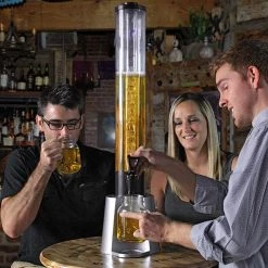 Another great enhancement to everyone’s favorite beer tower for the party of less than four. The clear plastic tube holds 2.5 liters (83 ounce) of your customers favorite refreshing beverage, and this Beer Tower stands 25 inches tall with a base of 9 inches in diameter. Beer taps are intended to be carefully pulled down only a quarter of the way to dispense liquid. Taps will be damaged, if pulled completely down.