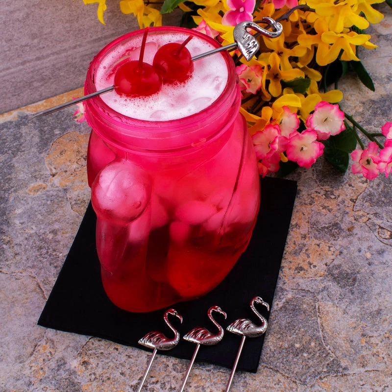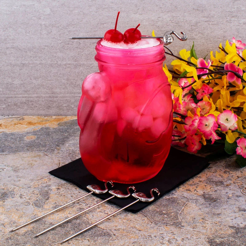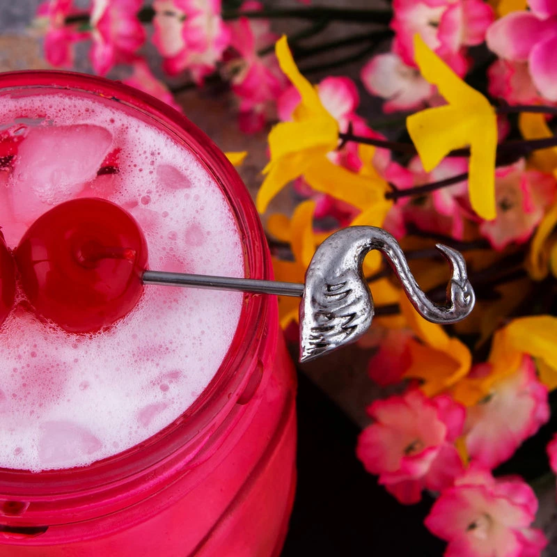 These flamingo cocktail picks are the perfect additive to garnish your drink with.ย They feature a pointed end that is great for skewering olives, cherries, appetizers, cheese, and fruit wedges.ย Made from durable stainless steel, these picks are lightweight, sturdy, and feature a perfectly crafted flamingo on top of every pick.ย Measures 4.75″ in length and come in pack of 4.ย