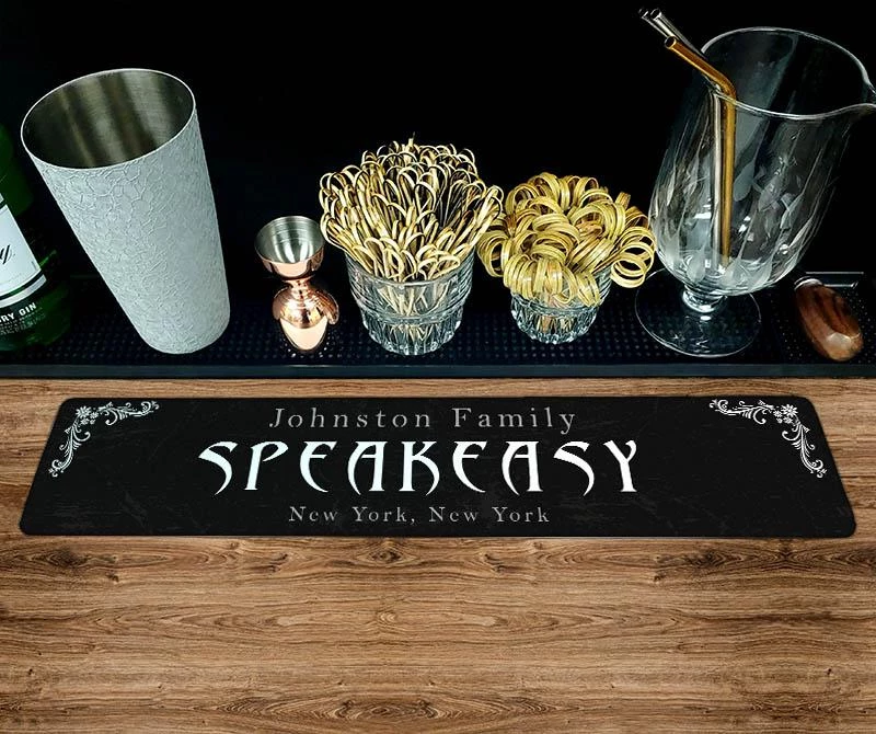 When prepping cocktails, Bar Mats offer a great utility to aid in catching splatters and spills. You will find many bars are aligned with different styles of bar mats to serve this purpose. The matting also secures the glassware in place, allowing for a better mixing environment. Now you have the ability to “full color” customize your very own bar mat. This mat offers a rubber backing and a soft polyester face that will absorb liquids while still showcasing your “Speakeasy” branded design. Simply type in your text, we do the rest!