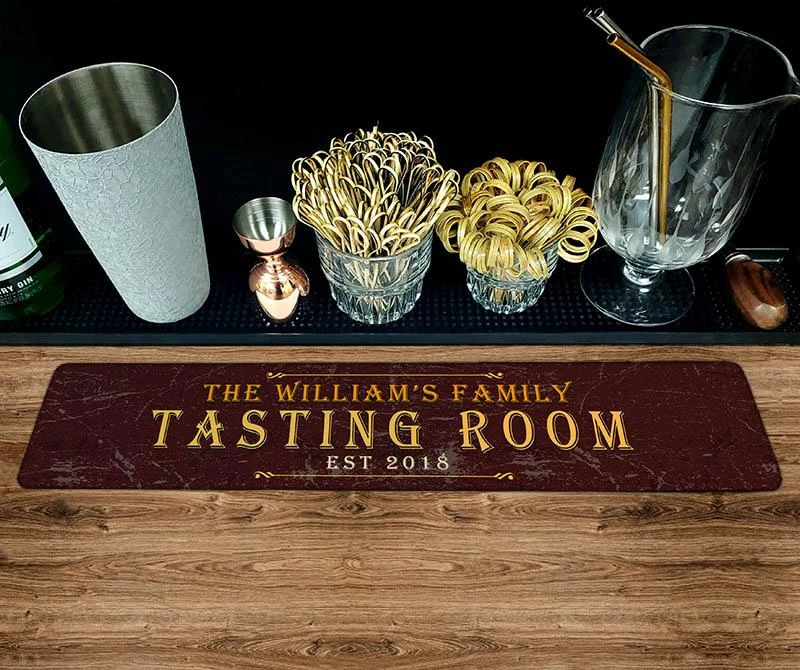 When prepping cocktails, Bar Mats offer a great utility to aid in catching splatters and spills. You will find many bars are aligned with different styles of bar mats to serve this purpose. The matting also secures the glassware in place, allowing for a better mixing environment. Now you have the ability to “full color” customize your very own bar mat. This mat offers a rubber backing and a soft polyester face that will absorb liquids while still showcasing your “Tasting Room” branded design. Simply type in your text, we do the rest!