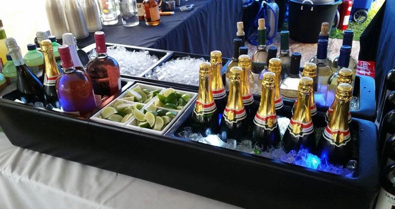 This premium insulated tub can also be used as a mobile bar and is great for bottle service, cocktail parties, wedding receptions, house warming parties, buffet tables, and more! An aluminum ice scoop and two double condiment trays are also include with the party barge. The condiment trays are FDA approved antimicrobial polyethylene for food contact. Ice is sure to last through your event since the barge is made like a premium cooler with pressure injected foam insulation. The tub is also designed to stay dry on the outside so you don’t have a condensation mess to clean up. Impress your guests with this handy party serving tub!