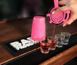 The Shaker Matโข was designed with working bartenders in mind. This mat gives them extra drain room for cocktail shakers to keep bar tops spill-free and sanitary. Don’t use dirty towels on your bar or take up space with a server mat for mixing. This Shaker-Matโข measures 9″ x 4.38″ and is available in blue, red, green, and black. They’re large enough for single bartenders but small enough to be coupled together for multiple applications.