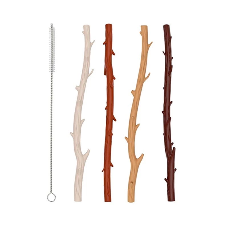 Reusable 4 pack of silicone straws shaped like twigs from natural oak, aspen, walnut and pine trees.They are a perfect alternative to disposable straws to help the environment. These cute, nature themed straws are great for all ages and any event. Includes cleaning brush. Measures 7 ⅞” length.