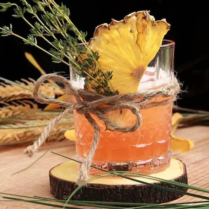 These fruits are thinly sliced at their height of ripeness, then dehydrated. Dehydration preserves the fruit until the time that it gets re-hydrated. A great solution to eliminate waste. These dehydrated fruits are a great garnish because they carry their flavor, and also add beauty to your glass. Perfect for other beverages such as tea as well.