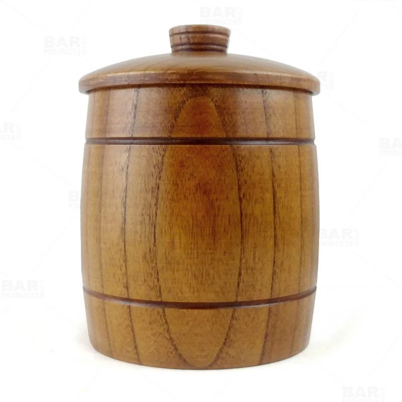 Made from a solid wood, this stylish ice bucket will enhance the decor of any type of bar setting. The craftsmanship of this ice bucket is certainly one to be desired with is smooth lines and food-grade seal, while the matching lid will be sure to keep your ice sanitary during the length of your drink service. This beautiful ice bucket holds 1 quart (35 ounces) of ice and stands approximately 7″ tall.